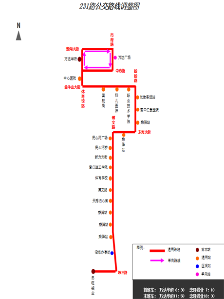 開往萬達(dá)廣場方向:7:10—7:45/17:20—18:00(經(jīng)停沿海辦事處時(shí)間預(yù)計(jì)7:13—7:48/17:23—18:03)。