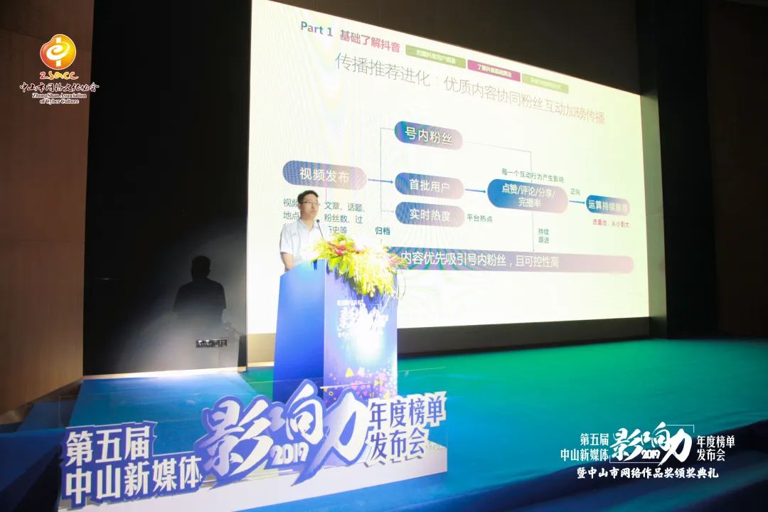 2019(第五屆)中山新媒體影響力年度榜單發(fā)布會現場,由人民網嘉賓單學剛發(fā)布并點評2019年度中山市政務微信、微博影響力排行榜單,活動評出了中山十大最具影響力政務新媒體(微信)、十大鎮(zhèn)區(qū)新銳政務新媒體(微信)、年度中山十佳網絡短視頻、年度十佳最具行業(yè)影響力微信公眾號、年度中山新銳抖音號、年度十大優(yōu)秀新媒體創(chuàng)新案例、中山優(yōu)秀新媒體編輯、年度中山十大優(yōu)秀網絡直播案例、年度優(yōu)秀網絡主播等獎項,對2019年度中山市優(yōu)秀網絡作品和2019年度中山十大好網民進行了頒獎,同時邀請今日頭條專家進行了政務抖音創(chuàng)作課題分享。