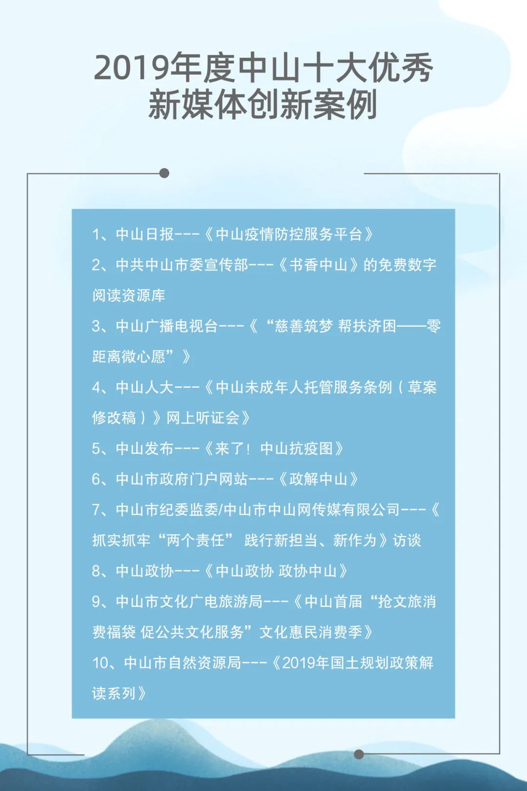 自2015年起,中山市網絡文化協(xié)會聯合中山日報報業(yè)集團、人民網輿情數據中心已連續(xù)成功舉辦了四屆中山新媒體影響力年度排行榜發(fā)布會。與此同時,自2017年起,中山廣播電視臺聯合新榜(上??窗裥畔⒖萍加邢薰荆┮惨呀涍B續(xù)成功舉辦了三屆中山市新媒體頒獎盛典。兩個評選活動通過立標桿、樹典型,有效促進了中山新媒體的建設運營水平,推動了中山新媒體的健康向上發(fā)展。